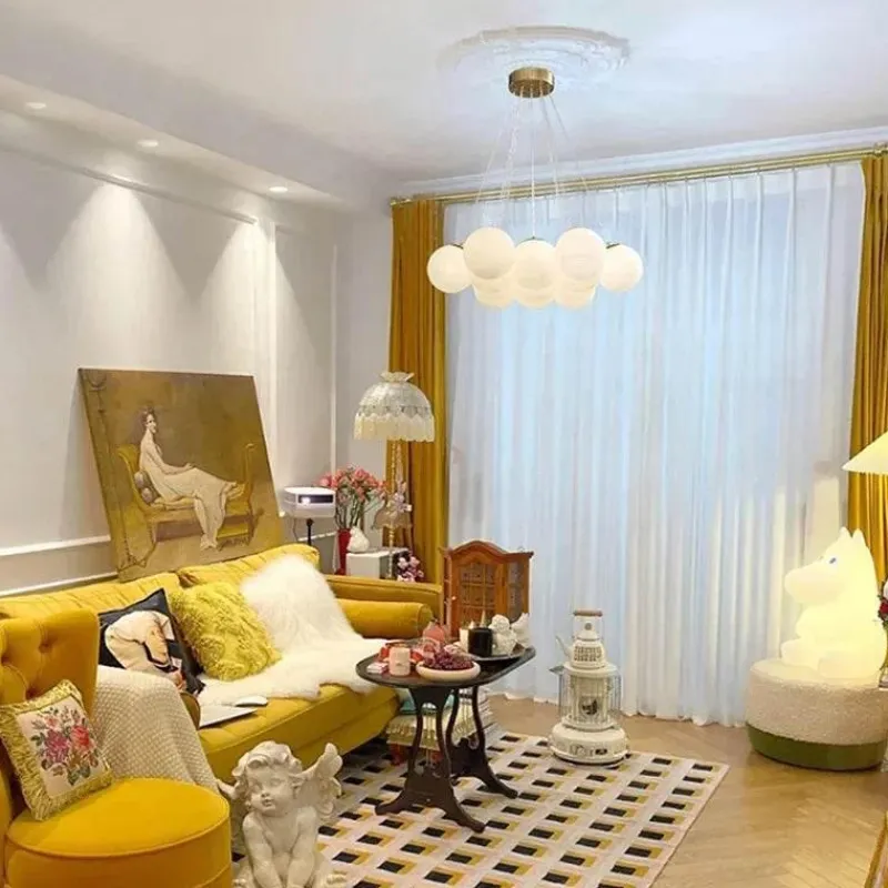 Erhellen Sie Ihren Raum mit diesem wunderschön gestalteten Kronleuchter im französischen Stil. Seine leuchtenden Glaskugeln vereinen mühelos klassische Eleganz mit modernem Charme. Die filigrane Struktur des Kronleuchters besticht durch mehrere leuchtende Kugeln, die ein sanftes, einladendes Licht ausstrahlen und so jedem Raum eine warme und elegante Atmosphäre verleihen.