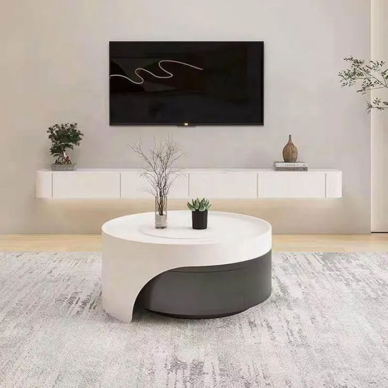 Experience the ideal blend of functionality and contemporary style with this dual-tier coffee table, designed to be a focal point in any modern setting. Featuring an innovative retractable lounge design, the unique circular top extends smoothly to reveal an additional tier underneath, offering added convenience when you need it. This coffee table is perfect for those who value modern aesthetics alongside efficient space management, providing a versatile surface area while maintaining a sleek, compact form when not in use.