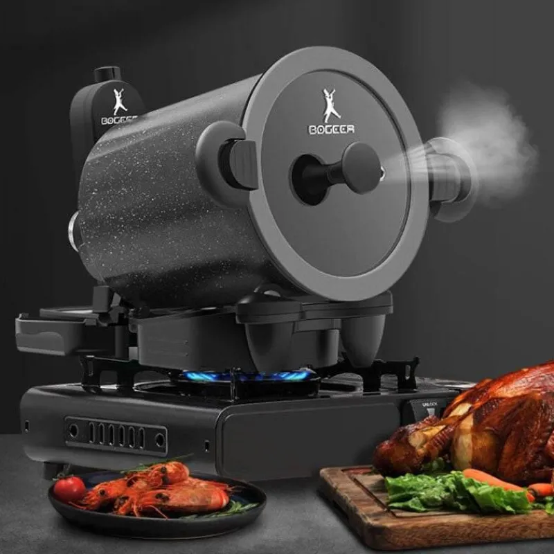Verbessern Sie Ihr Outdoor-Kocherlebnis mit Leichtigkeit und genießen Sie den Komfort der automatischen Rotation für perfekt gegrillte Gerichte. Dieser Grill ist eine großartige Ergänzung für jedes Outdoor-Kochset und ermöglicht es Ihnen, den vollen Geschmack Ihrer Grillspezialitäten mit minimalem Aufwand zu genießen.
