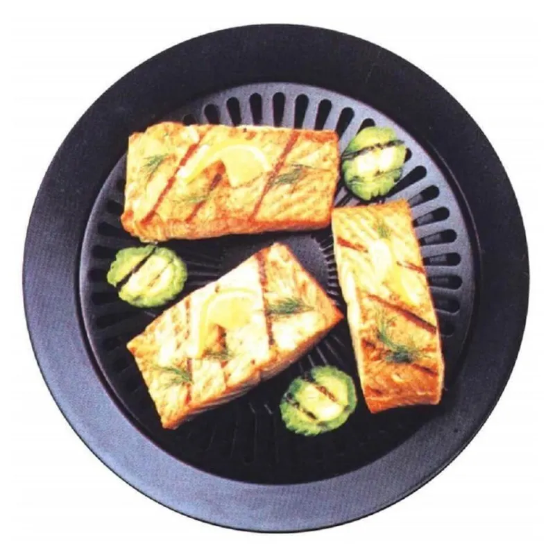 Mit einem großzügigen Durchmesser von ca. 31,5 cm (12,40 Zoll) und einem inneren Grilldurchmesser von 25 cm (9,84 Zoll) besteht dieser Grill aus langlebigen Eisen- und Legierungsmaterialien. Sein robustes Design, das durch ein präzises Stanzverfahren erreicht wird, gewährleistet Langlebigkeit und Zuverlässigkeit.