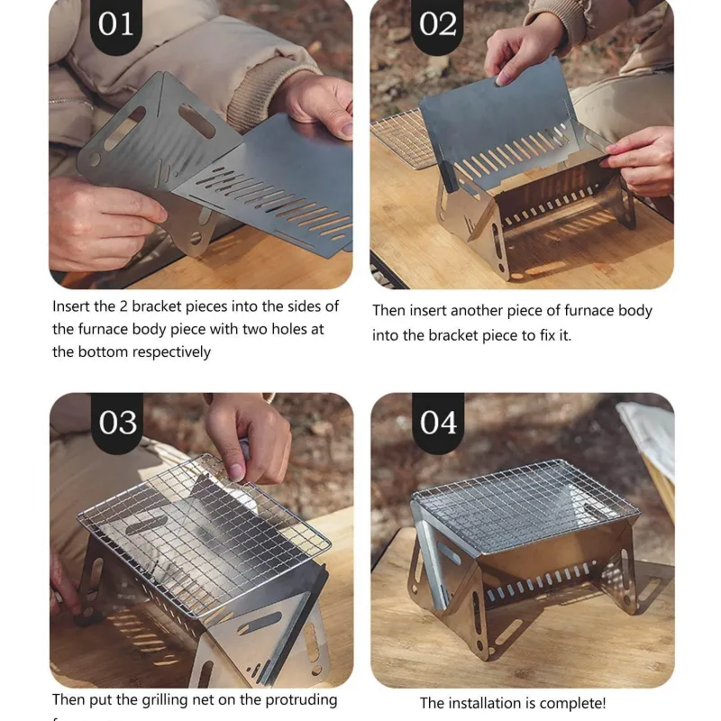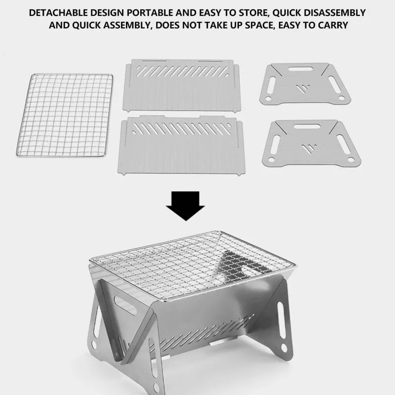 Erleben Sie entspanntes Kochen im Freien mit unserem tragbaren Holzkohlegrill, der speziell für Camping-Fans entwickelt wurde. Der Grill aus robustem Edelstahl ist hitzebeständig, kratzfest und rostfrei und hält so verschiedenen Wetterbedingungen stand, ohne sich zu verziehen. Seine robuste Konstruktion macht ihn zu einem zuverlässigen Begleiter für all Ihre Campingabenteuer.