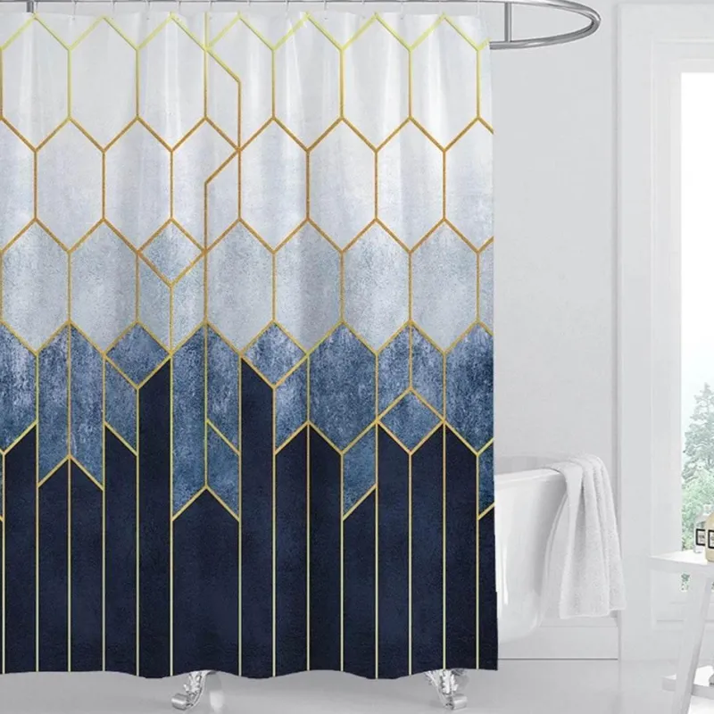 Verwandeln Sie Ihr Badezimmer mit diesem eleganten Duschvorhang, der einen Hauch römisch inspirierten Dekors in Ihr Zuhause bringt. Das Kunstwerk zeigt eine fesselnde Darstellung rauschender Wellen, kunstvoll in ruhigen Blau- und Weißtönen gehalten. Dieses Design fängt die dynamische Energie des Ozeans ein und schafft eine beruhigende Atmosphäre, die das Ambiente Ihres Badezimmers unterstreicht.