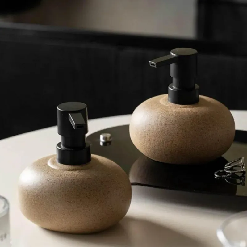 Transform your kitchen or bathroom with this elegant ceramic soap dispenser, designed to bring a natural element to your decor. Its smooth ceramic surface, adorned in warm, earthy tones, mimics the organic contours of river-polished stones, creating a soothing atmosphere in any space.