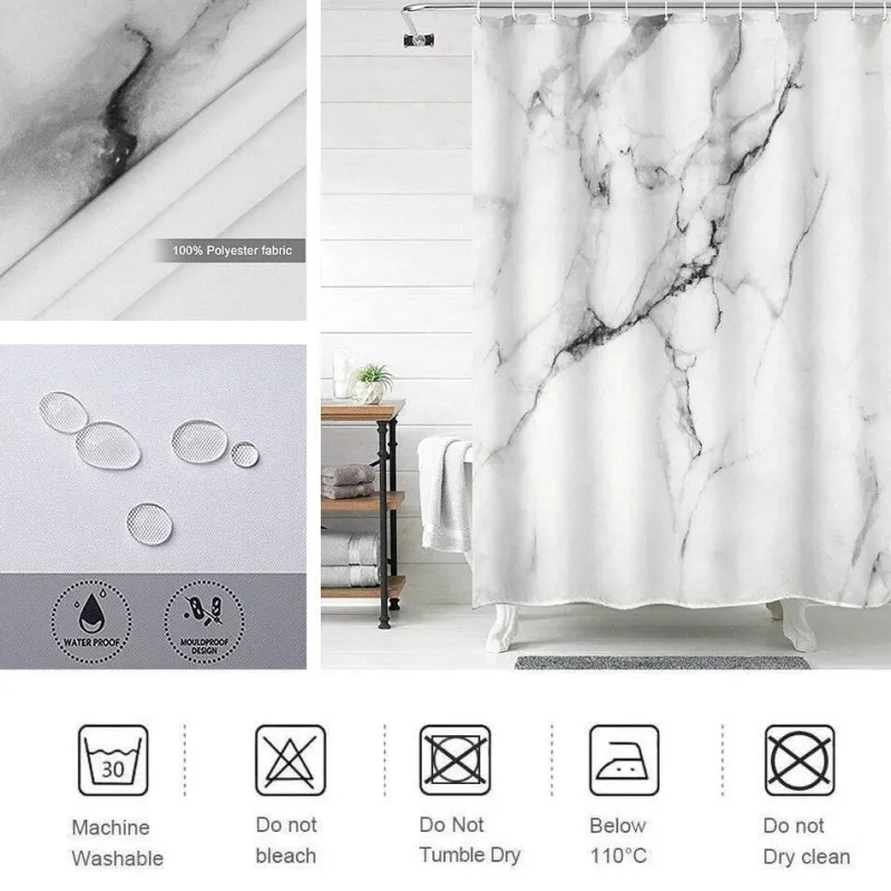 Verschönern Sie Ihr Badezimmer mit diesem eleganten Duschvorhang mit schwarz-weißem Marmormuster – eine stilvolle Ergänzung, die Ihrem Raum modernen Charme verleiht. Der Vorhang aus weicher, gebürsteter Mikrofaser vereint Optik mit praktischer Funktionalität. Das wasserabweisende Material hält Ihr Badezimmer frisch und trocken und ist maschinenwaschbar für mühelose Pflege. Das Set enthält 12 Haken für eine einfache Montage und einen sicheren Halt, der Ihre Einrichtung perfekt ergänzt.