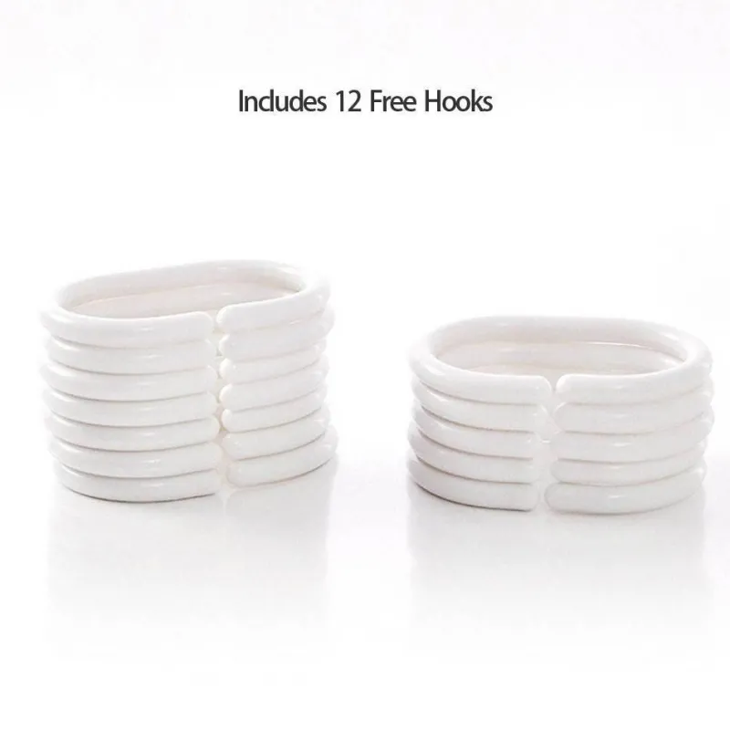 The included hooks are designed with elegant gray plastic beads and constructed from rust-resistant metal, ensuring they fit seamlessly with standard curtain rods. For optimal functionality, we recommend pairing it with a vinyl curtain liner (sold separately). To preserve the quality of your shower curtain, machine wash it in cold water on a gentle cycle using mild detergent. Wash separately and use non-chlorine bleach only as needed. For best results, tumble dry on low and remove promptly; if necessary, iron on the reverse side at a low setting.
