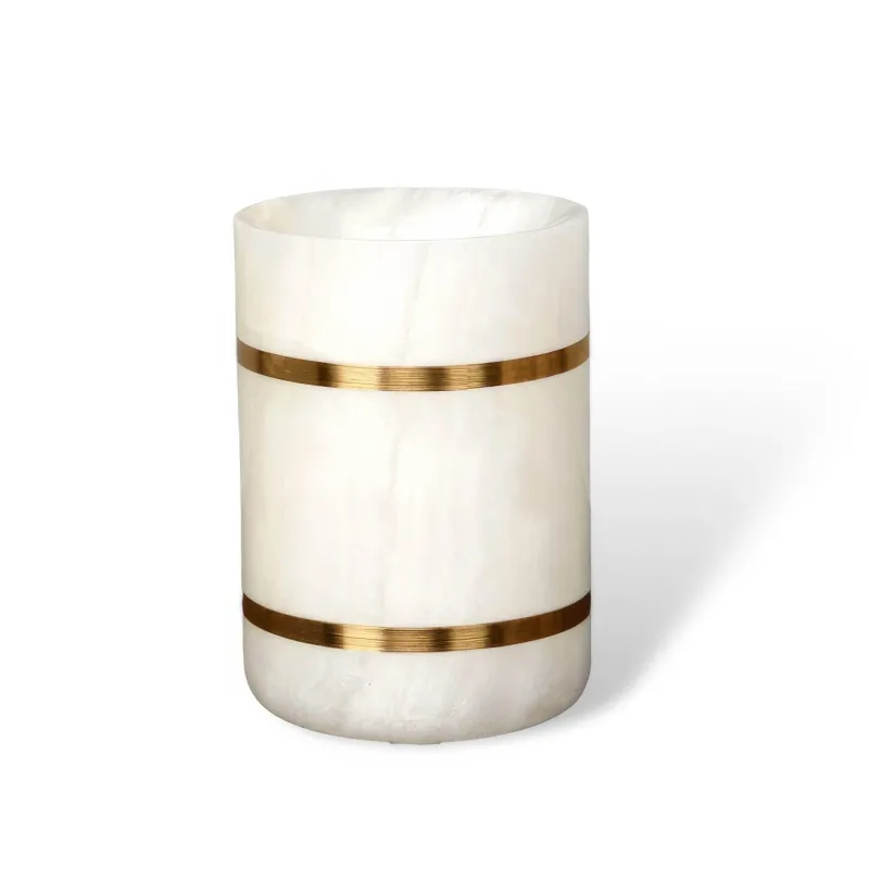 Transform your bathroom into a serene oasis with our elegant white marble accessories enhanced by sophisticated gold accents. Each item in this meticulously crafted set is made from premium natural marble, showcasing its timeless beauty and ability to elevate any decor. This thoughtfully curated collection includes essential pieces, such as a soap dispenser, soap dish, and toothbrush holder, all designed to seamlessly blend functionality with style.