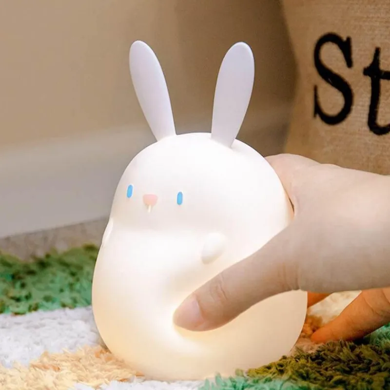Erhellen Sie das Zimmer Ihres Kindes mit diesem bezaubernden Cartoon-Kaninchen-Nachtlicht aus Silikon. Es sorgt für eine fröhliche Atmosphäre und spendet die ganze Nacht über ein beruhigendes Licht. Mit nur einer sanften Berührung können Sie den Raum ganz einfach beleuchten. Es ist die perfekte Ergänzung für Kinderzimmer oder gemütliche Spielbereiche.