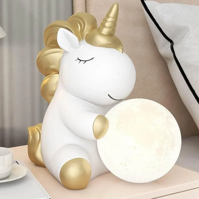 Erhellen Sie das Zimmer Ihres Kindes mit diesem bezaubernden Einhorn-Nachtlicht – eine entzückende Ergänzung, die jedem Raum Stil und Verspieltheit verleiht. Diese bezaubernde Lampe dient nicht nur als Nachttischlampe, sondern setzt auch dekorative Akzente auf Schreibtischen oder im Eingangsbereich.