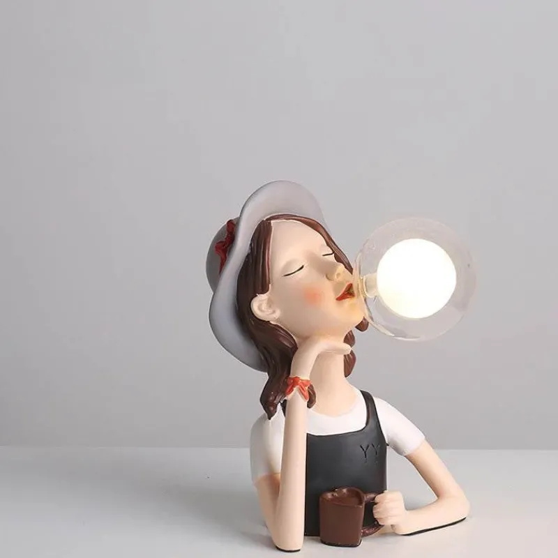Erhellen Sie Ihren Raum mit unseren eleganten Couchtischlampen, die Ihre Wohnkultur stilvoll und charmant aufwerten. Diese fein gearbeiteten Lampen eignen sich perfekt für verschiedene Umgebungen und sind in reizvollen Designs erhältlich, darunter die Tischlampe „Bouquet Girl“ (15 cm x 35 cm), die Tischlampe „Red Hat Coffee Girl“ (16 cm x 24 cm) und die Tischlampe „Gray Hat Coffee Girl“ (16 cm x 24 cm). Jede Lampe ist mit exquisiten Details verziert und kombiniert gekonnt Harz und Glas zu einem einzigartigen Blickfang für Ihr Schlafzimmer, Wohnzimmer oder Nachttisch.