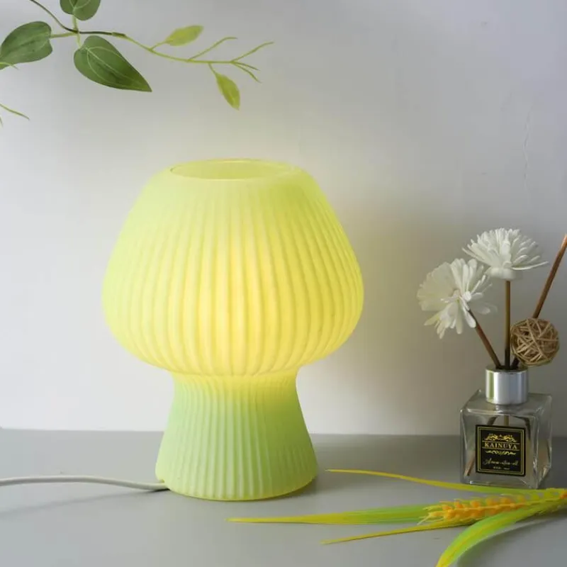 Für eine einheitliche Ästhetik können Sie Ihre gestreifte Pilz-Tischlampe durch eine einfache gestreifte Keramikvase oder ein modernes, schlichtes Schreibtisch-Aufbewahrungsregal ergänzen.