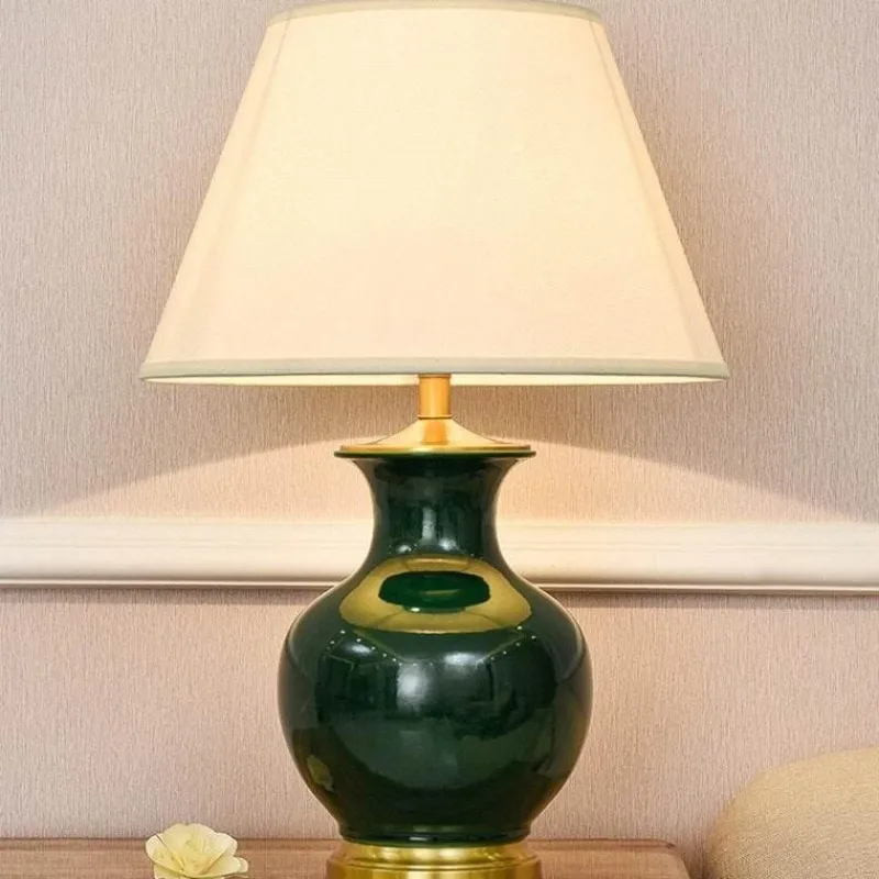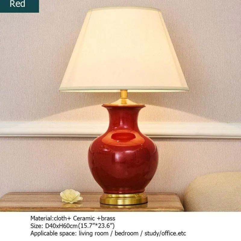 Wir präsentieren die KARELA Ceramica Tischleuchte, eine stilvolle Leuchte, die Ihre Wohnkultur mit einem Hauch moderner Eleganz bereichert. Diese Leuchte verfügt über einen wunderschön gearbeiteten Keramiksockel, inspiriert von der Form eines Bowlingkegels, ergänzt durch einen passenden Stoffschirm. Mit den Maßen 40 x 60 cm ist sie in zwei auffälligen Farben erhältlich: Grün und Rot.