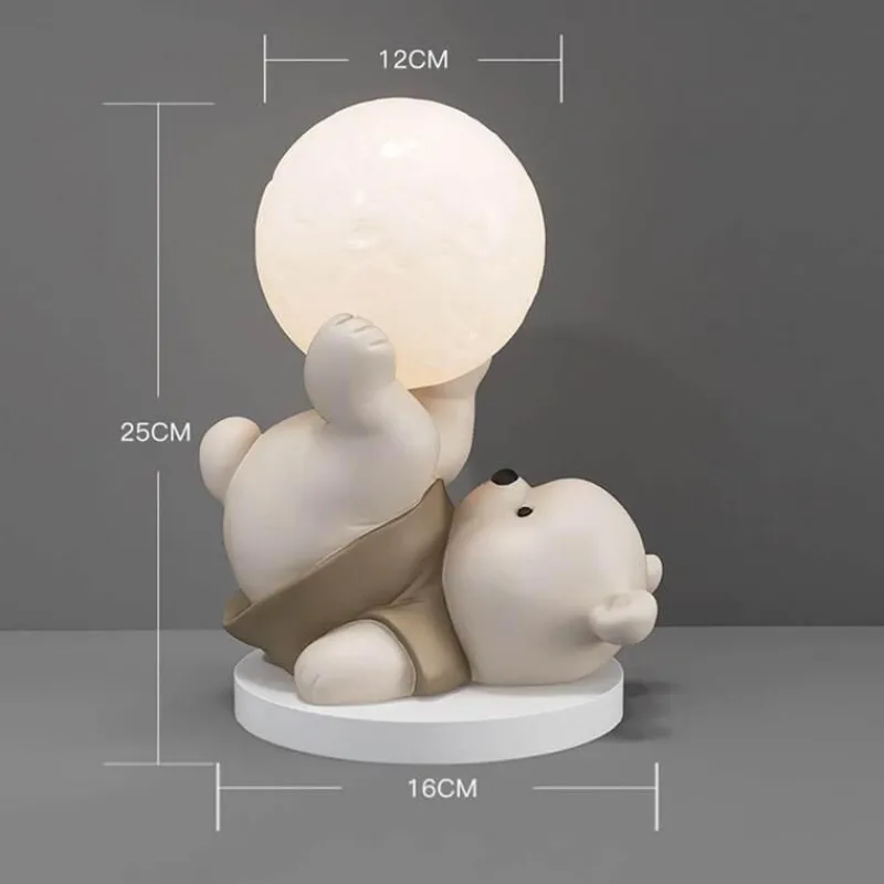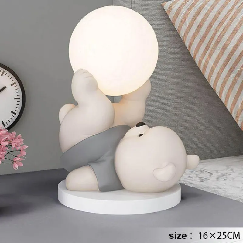 Verwandeln Sie das Kinderzimmer Ihres Kindes mit dem Goodbye Bear Nachtlicht, einer charmanten Nachttischlampe, die jedem Schlafzimmer eine verträumte Note verleiht. Dieses dekorative Accessoire dient sowohl als beruhigendes Nachtlicht als auch als schöne Ergänzung Ihrer Wohnkultur. Die Lampe aus robustem Harz besticht durch ihr einladendes weißes Finish, das mit vielen Designthemen harmoniert.