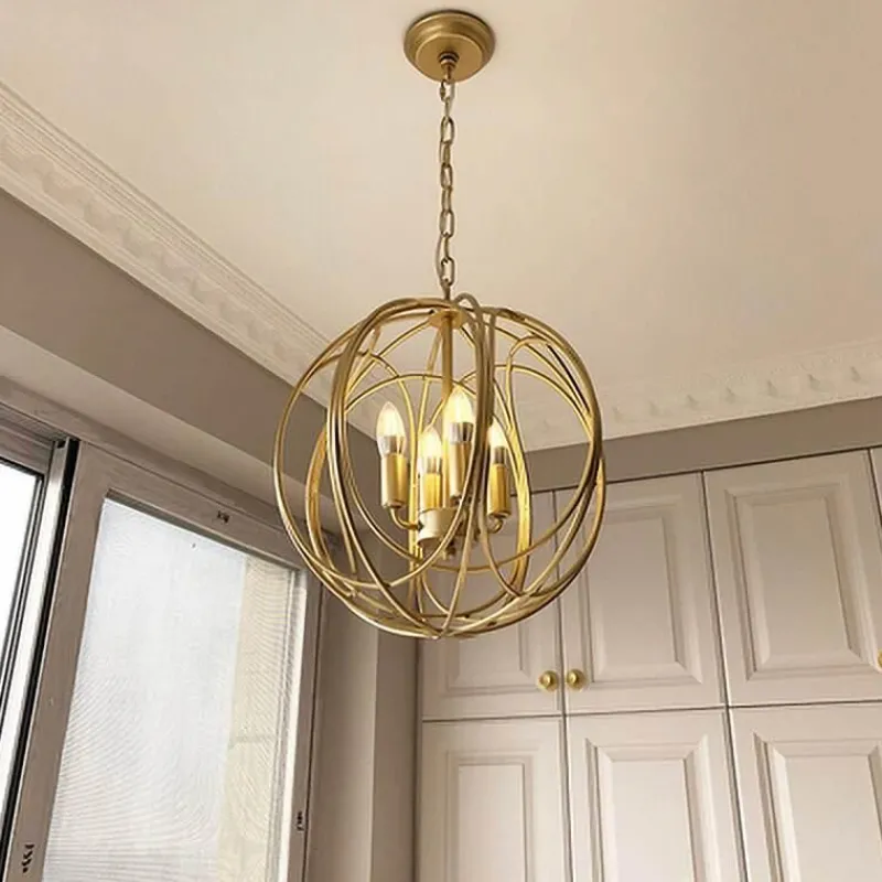 Elevate your home decor with this exquisite golden iron chandelier, designed to bring a touch of creative sophistication to any space. Crafted from durable metal, this pendant lamp showcases a unique American village style that enhances the aesthetic appeal of your interiors while providing ample illumination.