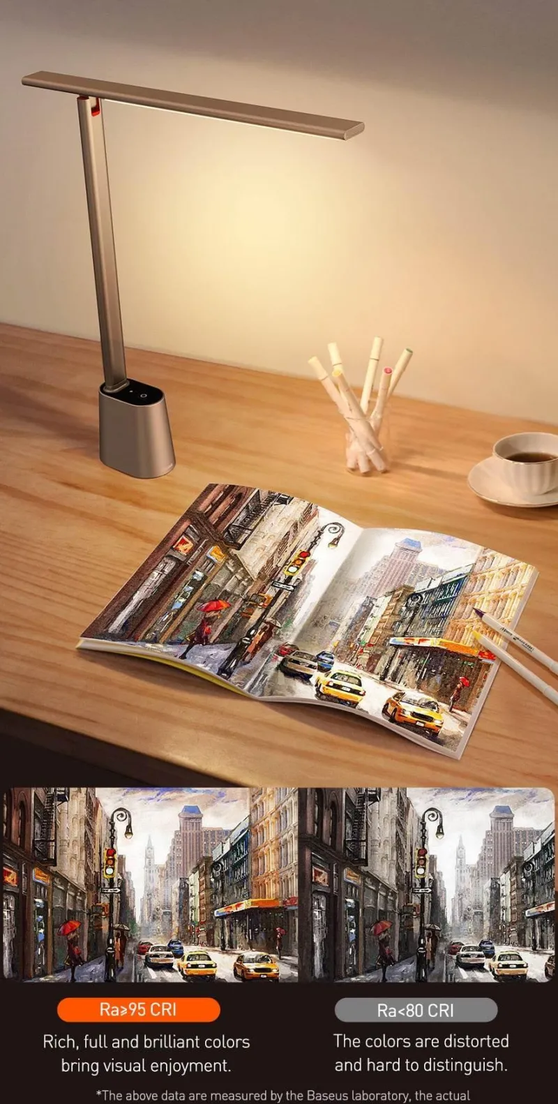Erleben Sie optimale Beleuchtung mit unserer elegant gestalteten, dimmbaren Smart-Schreibtischlampe. Dank fortschrittlicher Technologie erkennt sie die Helligkeit Ihres Raumes intelligent. Diese Lampe optimiert dynamisch die Lichtbalance und sorgt überall für eine gleichmäßige und angenehme Beleuchtung. Ausgestattet mit einem integrierten 2200-mAh-Akku bietet sie bis zu 13 Stunden Dauerlicht bei voller Ladung. Die Ladezeit beträgt nur 3 Stunden – perfekt für Notfälle, zum Lesen, Malen, Arbeiten oder Lernen.