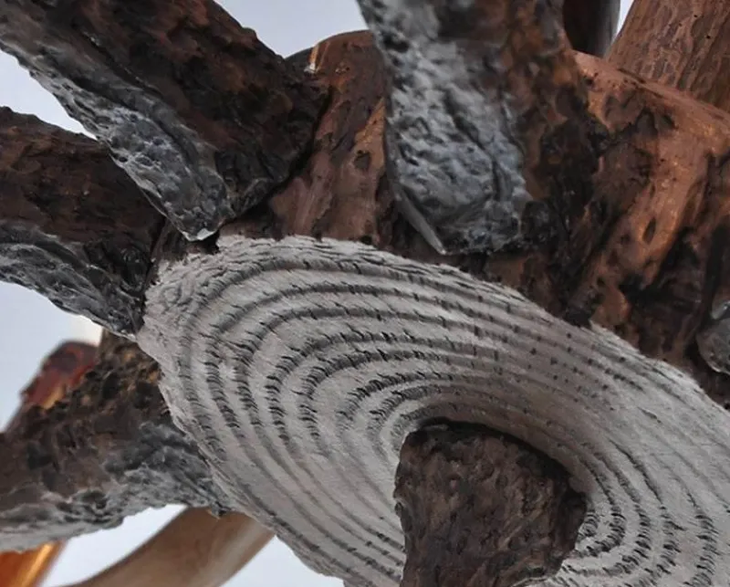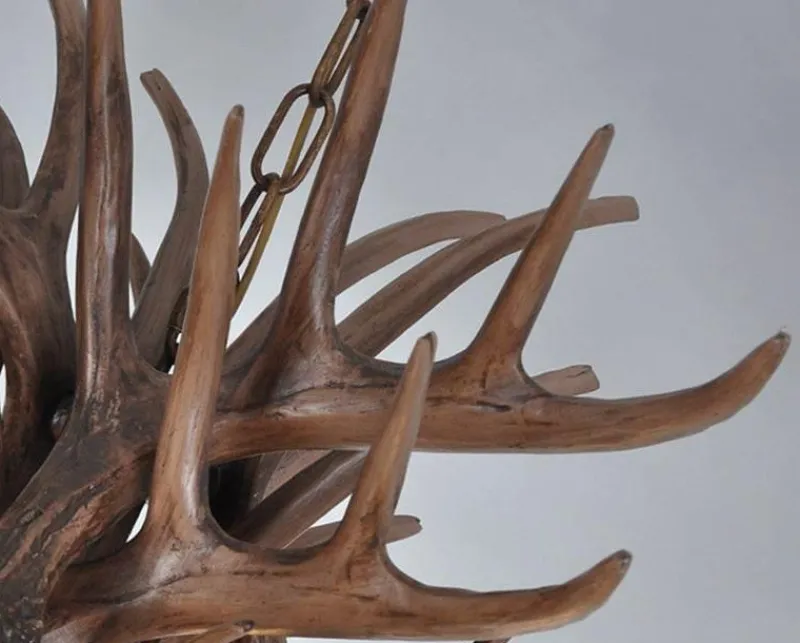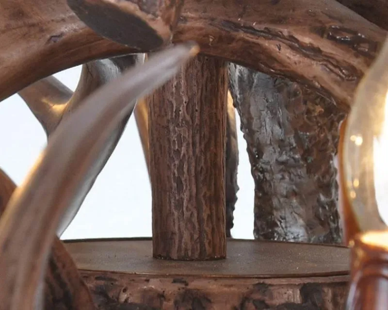 Die antiken Messingketten, die sich um die Hirschhörner wickeln, verstärken den rustikalen Charme des Designs und machen es zu einer perfekten Ergänzung für Ihr Wohnzimmer oder Ihren Essbereich.
