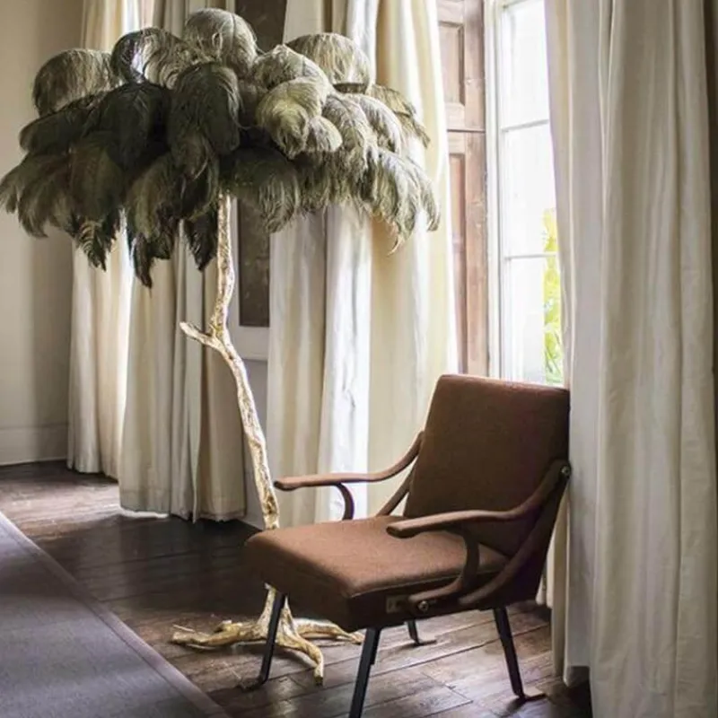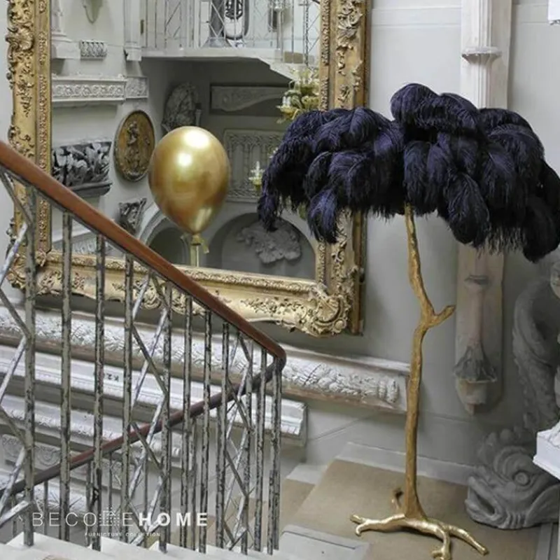 Features: Feather Gold Copper Brass Resin Floor Lamp