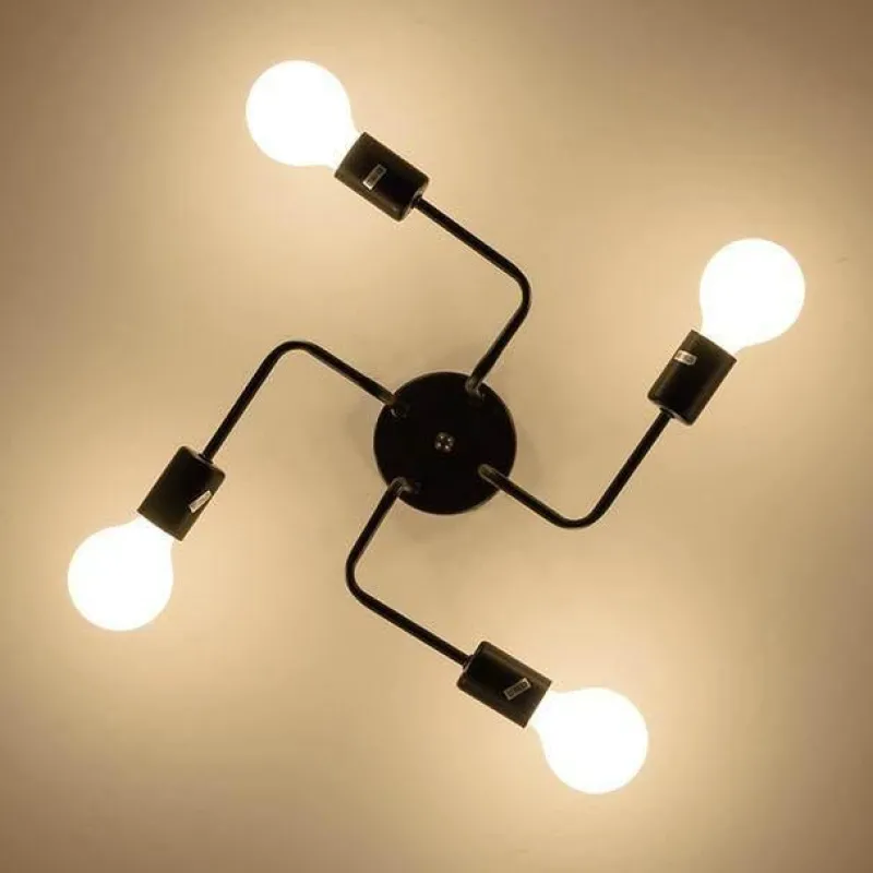 Elevate your space with this industrial wrought iron chandelier, designed to blend functionality with style and add retro charm to your interiors. This semi-flush mount ceiling light features a clean, minimalist design that makes it an excellent choice for those looking to introduce an urban touch to their home.