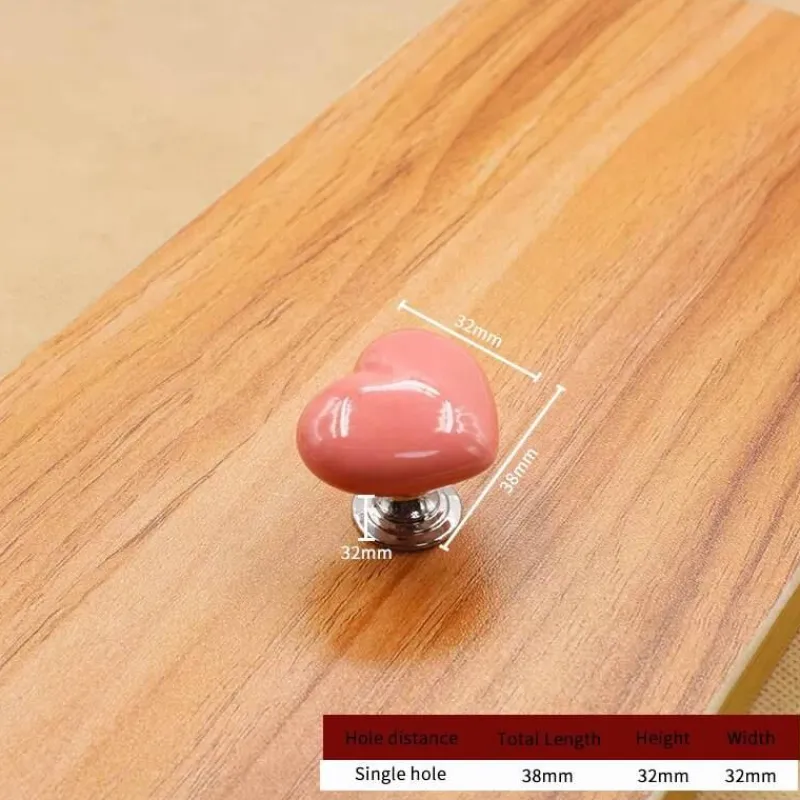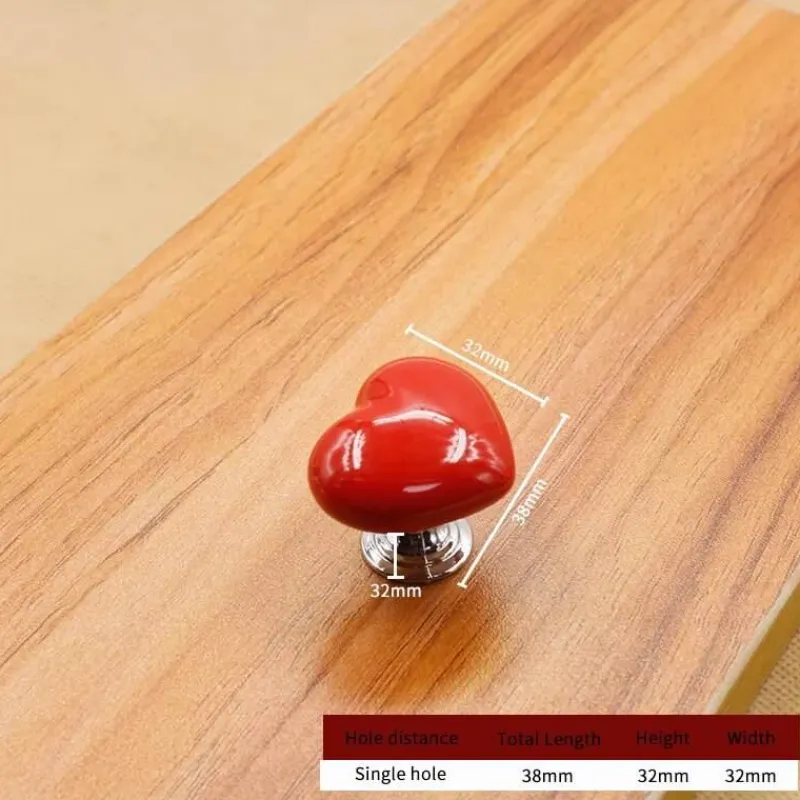 Im Lieferumfang enthalten ist ein Keramik-Herz-Türgriff für Schränke, der Ihre Einrichtung mit seiner verspielten und zugleich edlen Optik aufwertet. Ob Sie alte Möbelstücke auffrischen oder neue Projekte realisieren – dieser Griff ist die ideale Wahl, um Ihrem Zuhause eine persönliche Note zu verleihen.