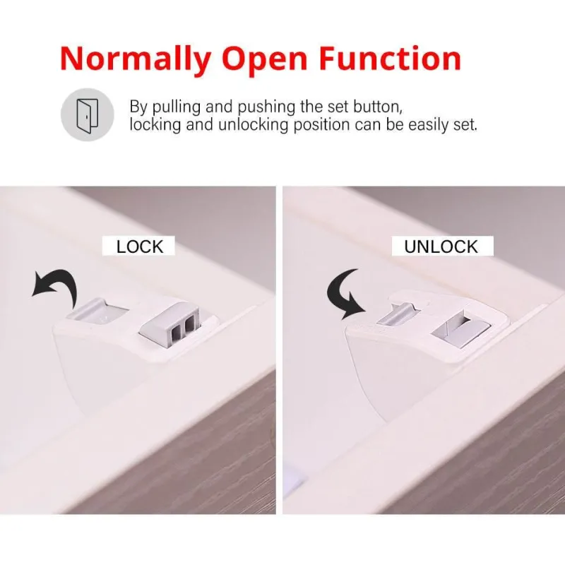 Diese aus robustem Kunststoff gefertigte Kindersicherungslösung ist für jedes Kind geeignet und eignet sich ideal zum Sichern verschiedener Schubladen und Schränke im ganzen Haus.