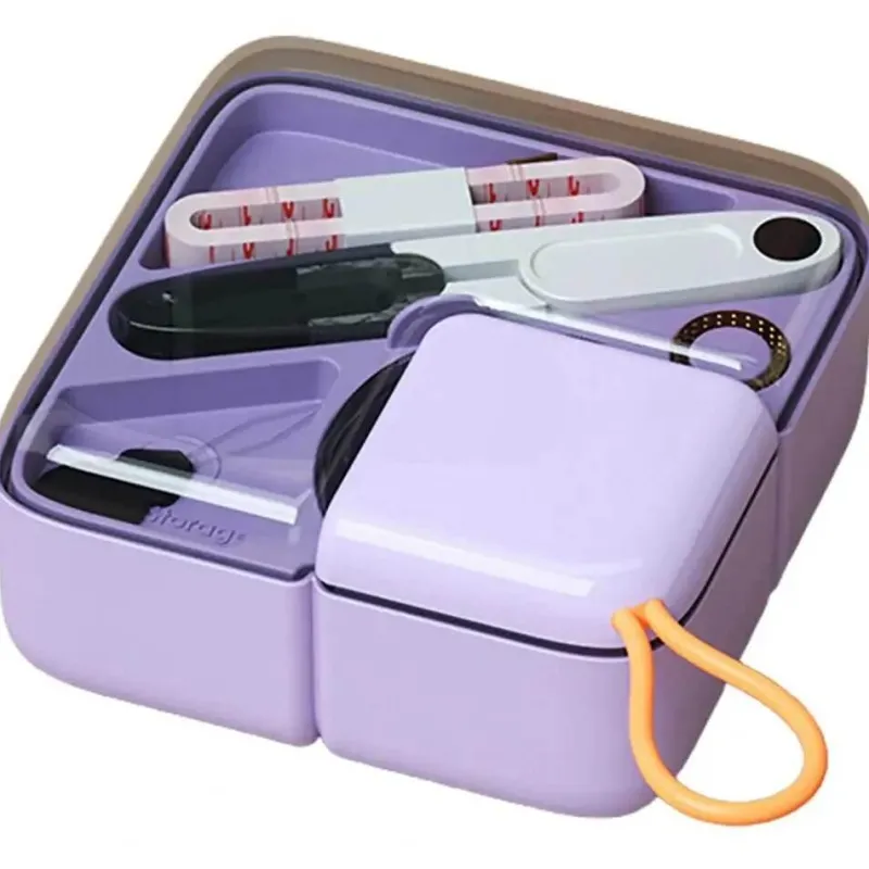 Entdecken Sie das stilvolle und tragbare Nähset für müheloses Nähen. Das innovative doppellagige Design dieses Nähkastens sorgt dafür, dass Ihre Werkzeuge übersichtlich und leicht zugänglich bleiben. Ein integrierter Trenner trennt Ihre Nähutensilien von den Fäden und hilft Ihnen so, Ordnung zu halten und Ihre Projekte zu optimieren.