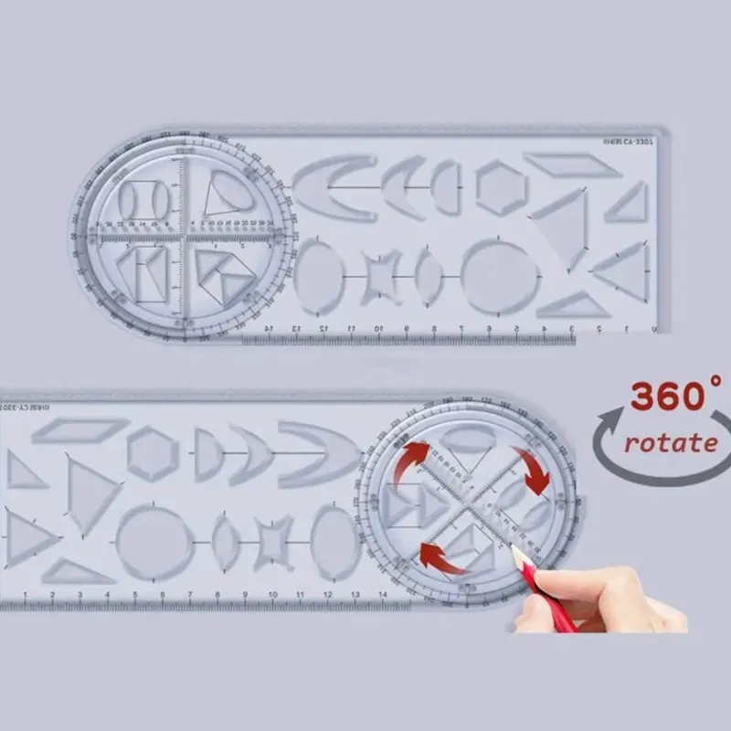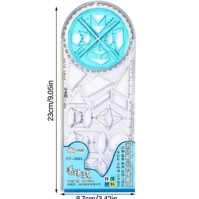 Dieses vielseitige geometrische Zeichenwerkzeug ist ideal für Schüler, Künstler und Profis. Es fungiert als Lineal und Winkelmesser und verfügt über eine Bleistiftzirkelfunktion und bietet umfassenden Nutzen für eine Vielzahl von Aufgaben.