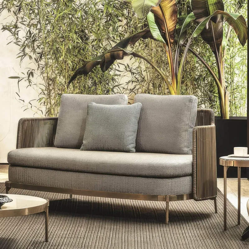 Werten Sie Ihren Außenbereich mit dem Lorraine Outdoor-Sofa auf. Es vereint Stil und Langlebigkeit. Diese moderne Sitzgelegenheit erhöht den Komfort Ihrer Terrasse oder Ihres Gartens und verkörpert gleichzeitig moderne Designelemente. Gefertigt aus wetterbeständigen Materialien trotzt es den Elementen und garantiert zuverlässige, langlebige Nutzung. Die weichen Kissen laden zum Entspannen ein und schaffen eine gemütliche Oase für gemütliche Nachmittage oder gesellige Runden. Entdecken Sie die nahtlose Verbindung von Funktionalität und Design dieser Outdoor-Möbelkollektion, die Ihren Außenbereich perfekt verschönert. Entdecken Sie mehr bei Decor .