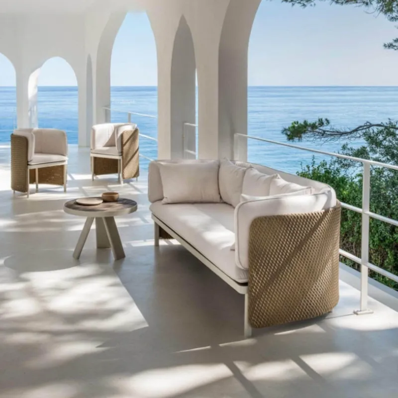 Entdecken Sie die Terrasse Outdoor-Möbelkollektion, in der sich modernes Design elegant mit dem zeitlosen Charme von Rattan verbindet. Diese sorgfältig zusammengestellte Auswahl wertet Ihren Außenbereich auf und bietet eine harmonische Kombination aus Stil und Komfort, die zu jeder Terrasse oder jedem Garten passt.