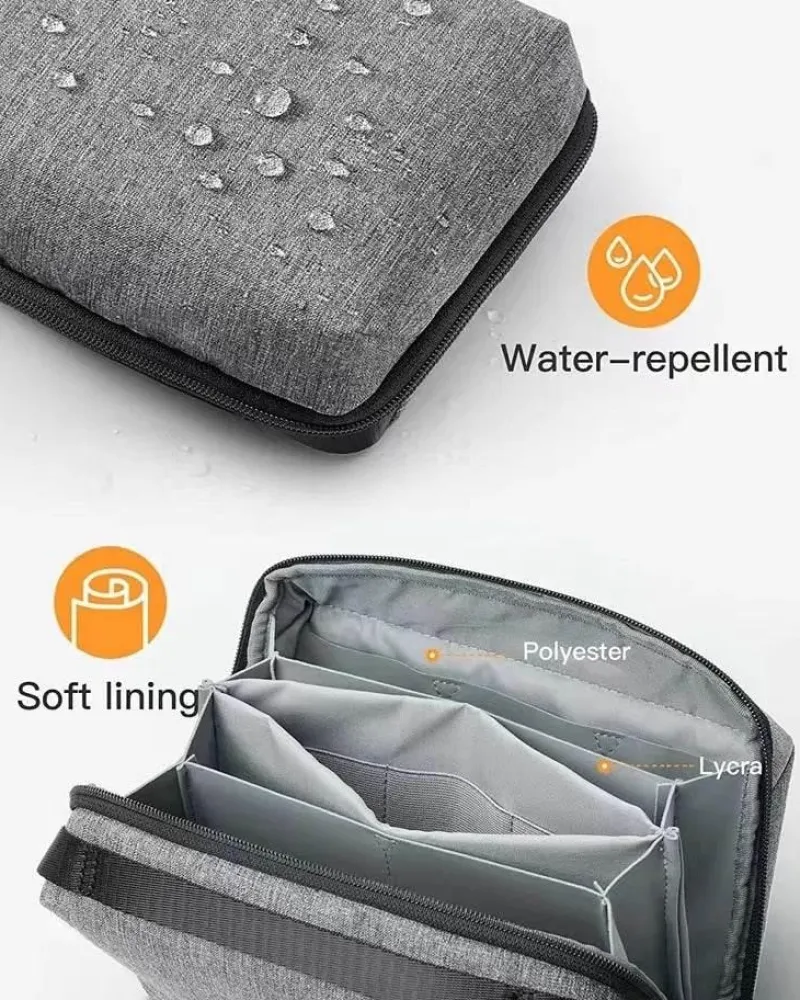 Diese Kosmetiktasche aus hochwertigem, strapazierfähigem und wasserdichtem Material ist für die Anforderungen auf Reisen konzipiert. Sie können Ihre Produkte bedenkenlos einpacken, ohne sich Sorgen machen zu müssen, dass verschüttete Flüssigkeiten oder Lecks Ihre Kosmetika oder die Tasche selbst beschädigen.