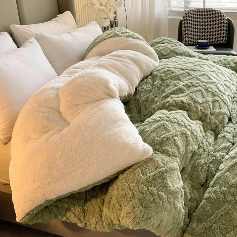 Diese Decke aus luxuriös weichen Materialien bietet unvergleichliche Weichheit und hervorragende Isolierung und sorgt Nacht für Nacht für ein angenehmes Schlaferlebnis. Perfekt zum Einkuscheln auf der Couch mit einer heißen Tasse Kakao oder zum Kuscheln im Bett für eine erholsame Nachtruhe – die Marcella Ultra Thick Decke hüllt Sie in einen sanften Kokon aus Wärme und Behaglichkeit.