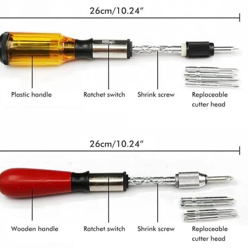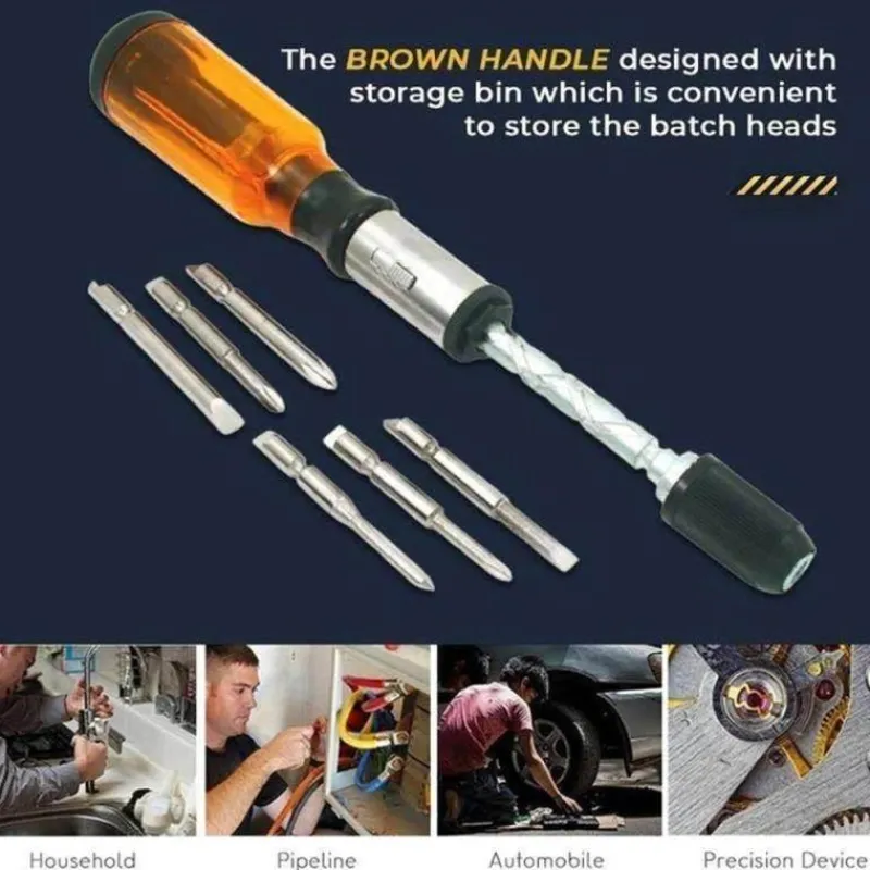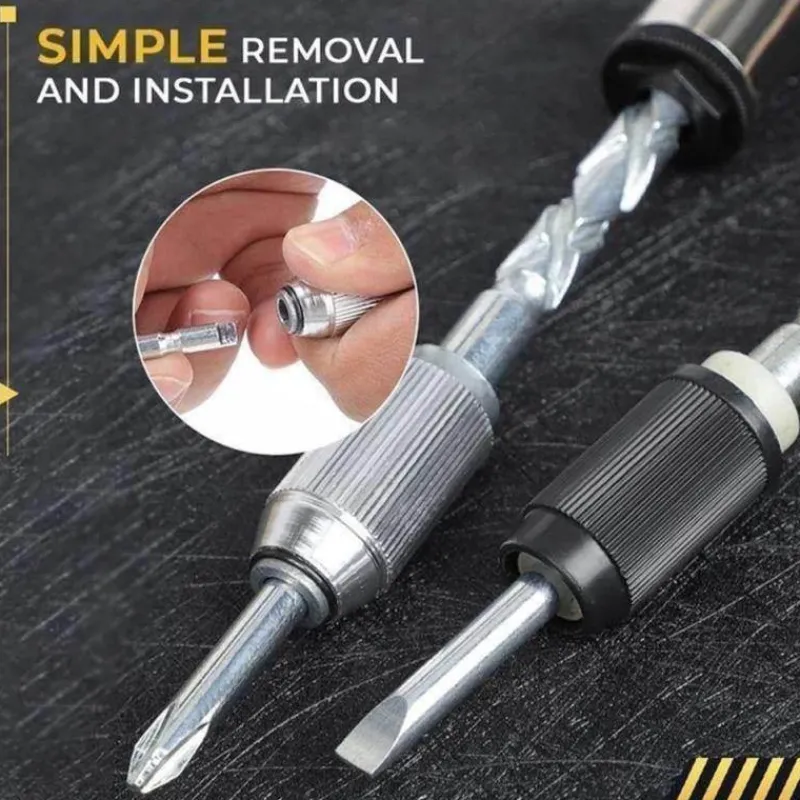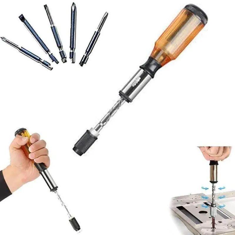 Entdecken Sie die Vielseitigkeit und den Komfort unseres verstellbaren Schraubendreher-Sets, das für Präzision und Effizienz bei Heimwerkerprojekten entwickelt wurde. Dieses robuste und langlebige Werkzeug aus Chrom-Vanadium-Stahl ist kompakt und tragbar und lässt sich problemlos in Ihrem Werkzeugkasten verstauen oder unterwegs mitnehmen. Dank des innovativen halbautomatischen Mechanismus können Sie den Griff einfach drücken, um den Schraubendreherstab automatisch zu drehen. So können Sie Schrauben schneller festziehen oder lösen als mit herkömmlichen Schraubendrehern.