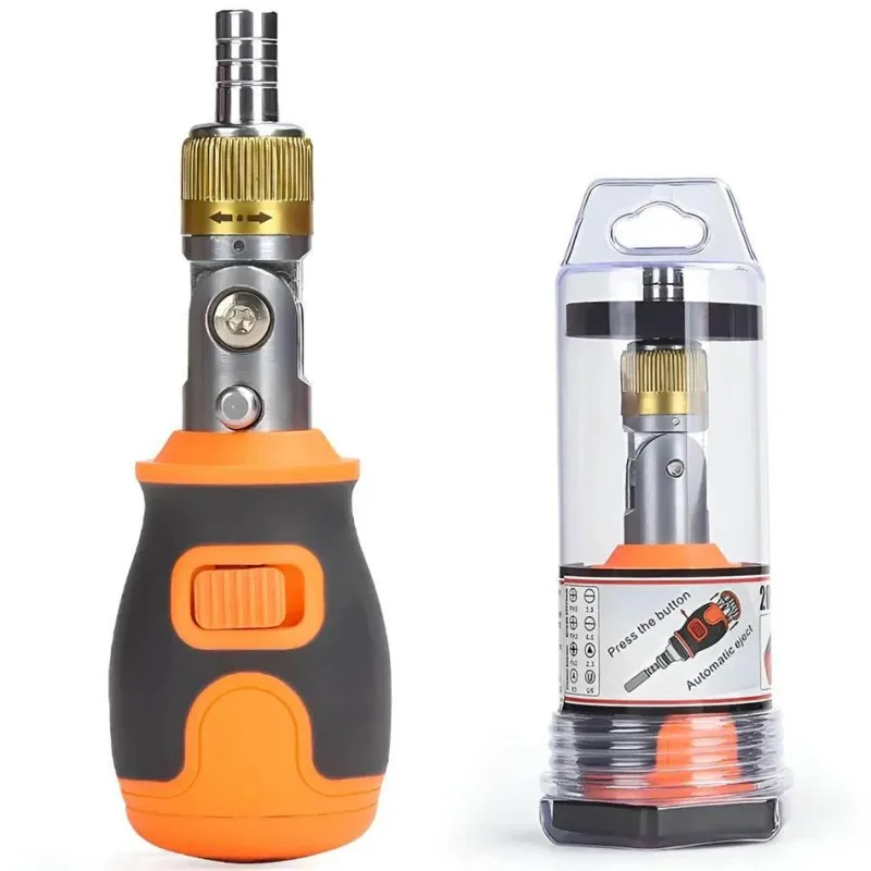 Das vielseitige Design umfasst Bits für ein breites Anwendungsspektrum. Die magnetischen Spitzen halten die Schrauben sicher an Ort und Stelle und sorgen für Präzision bei jeder Arbeit. Leicht und tragbar, lässt sich dieser Schraubendreher problemlos überallhin mitnehmen. Gefertigt aus langlebigem Chrom-Vanadium-Stahl bietet er langlebige Leistung für den täglichen Gebrauch.