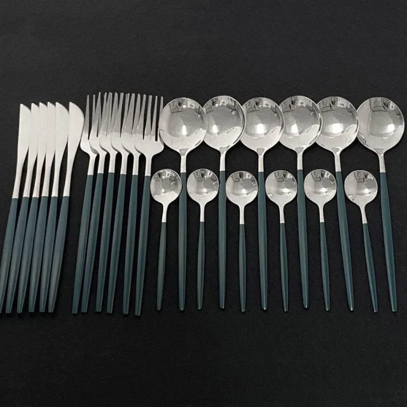 – **Hochwertige Konstruktion:** Dieses Besteckset besteht aus extradickem, veredeltem Edelstahl mit matter Oberfläche und bietet hervorragende Korrosionsbeständigkeit und Haltbarkeit für den täglichen Gebrauch.