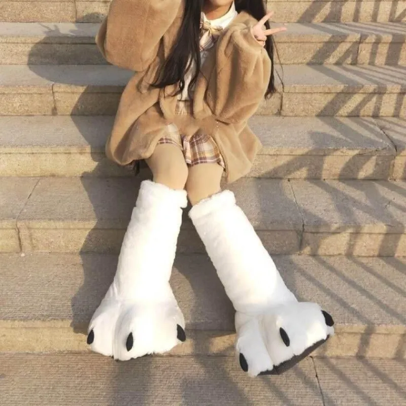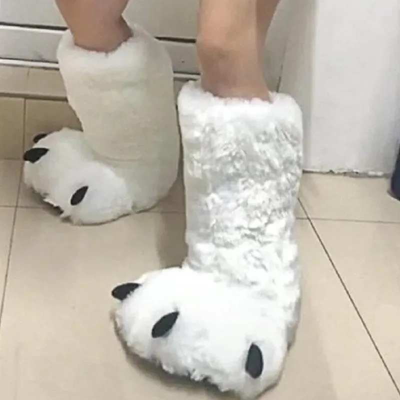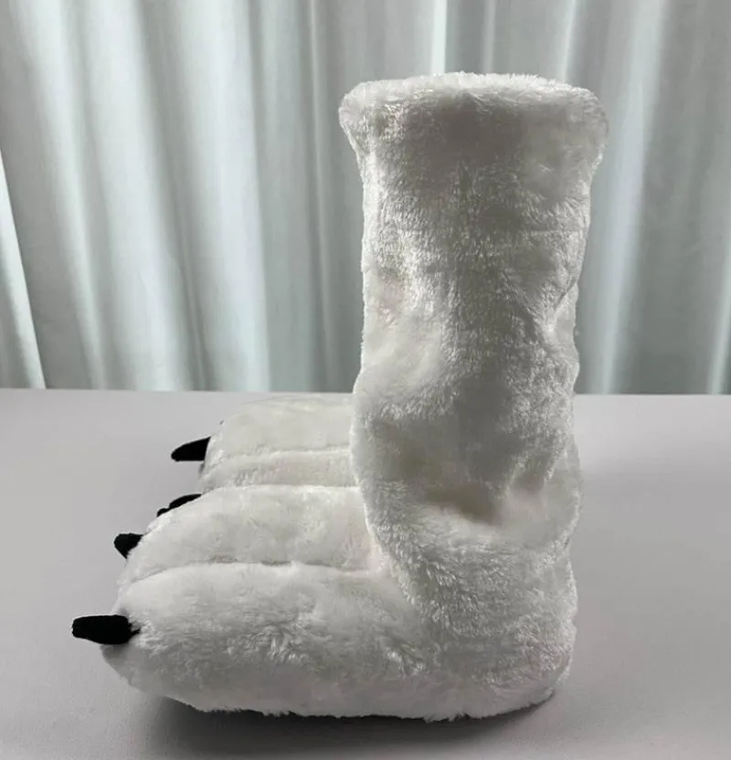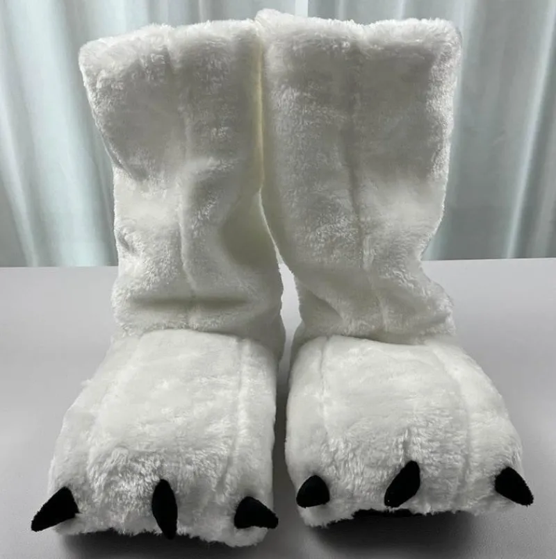 1 x pelzige Hausschuhe mit Bärenklauen.