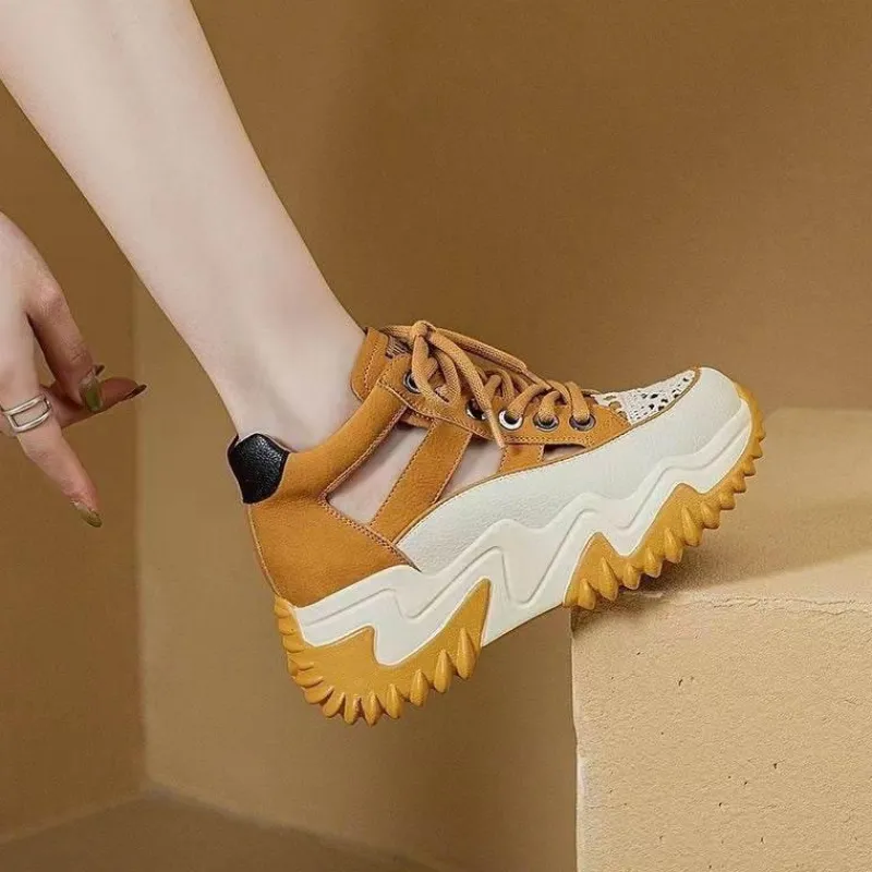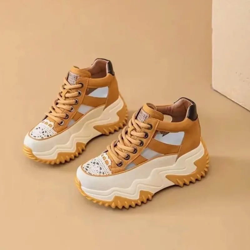 1 x stylische, atmungsaktive High-Top-Schuhe mit Hohlmuster.