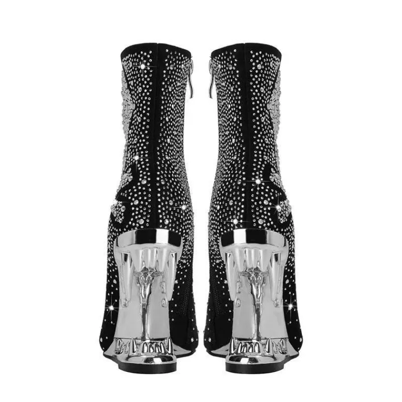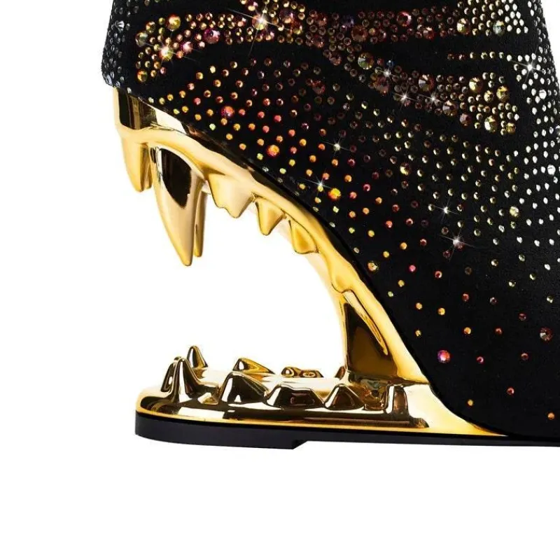 Setzen Sie ein starkes Statement mit diesen bezaubernden High Heels im einzigartigen Tiger Gleam-Design, die garantiert alle Blicke auf sich ziehen. Die mit funkelnden Strasssteinen besetzten Totenköpfe reflektieren das Licht wunderschön und verleihen jedem Outfit einen auffälligen Glanz. Komfortabel und stilvoll zugleich, eignen sie sich ideal für viele Anlässe, egal ob Sie einen stimmungsvollen Abend genießen oder eine elegante Veranstaltung besuchen.