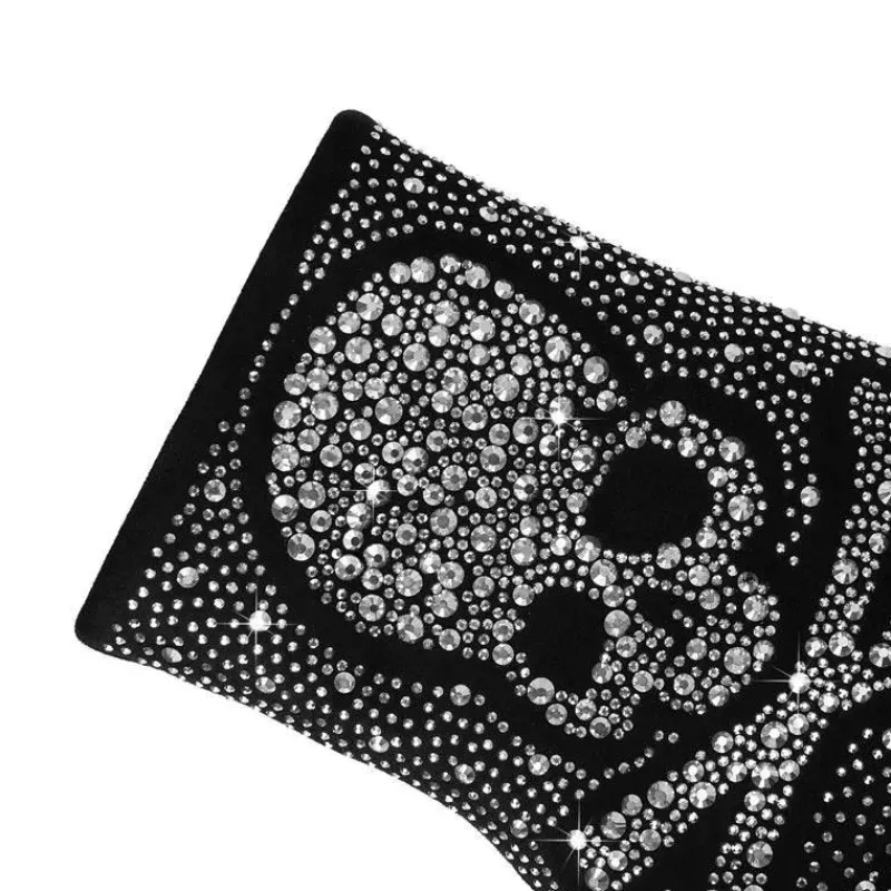 1 Paar High Heels mit Tiger Gleam-Strass-Totenkopf.