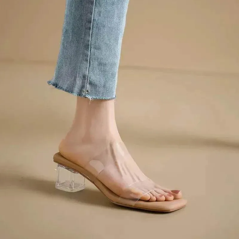 1 Paar ultraweiche, transparente High-Heel-Slipper für Damen.