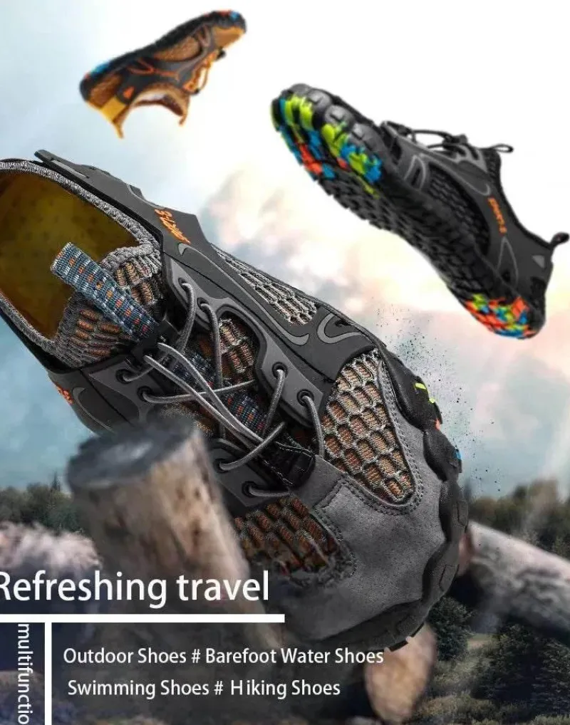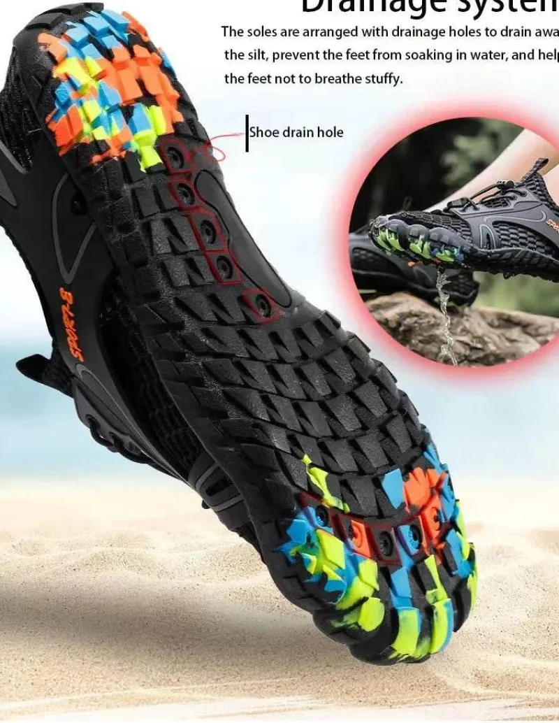 Wie unterscheiden sie sich von anderen Optionen? Im Vergleich zu herkömmlichen Strandschuhen bieten unsere Adventure Feel Quick Dry Non-Slip-Strandschuhe verbesserte Schnelltrocknungseigenschaften und eine zuverlässige rutschfeste Gummilaufsohle, die Komfort und Sicherheit nahtlos vereint.