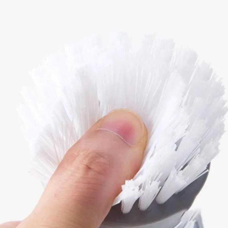 Die Bürste wurde für höchsten Komfort entwickelt und verfügt über eine kompakte Struktur mit runden und eckigen Kontaktflächen. So erreicht sie auch enge Stellen und entfernt mühelos hartnäckigen Schmutz. Der Vorratsbehälter verleiht Ihrer Reinigungsroutine eine spielerische Note und macht das Geschirrspülen zu einem angenehmeren Erlebnis. Die aus sicheren Materialien gefertigte Bürste reinigt effizient, ohne Ihr Geschirr zu beschädigen.