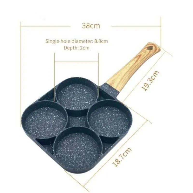 Mit vier Fächern eignet sich diese multifunktionale Pfanne perfekt für die Zubereitung von Omeletts, Burgern und mehr und ermöglicht Ihnen die schnelle und effiziente Zubereitung köstlicher Mahlzeiten.