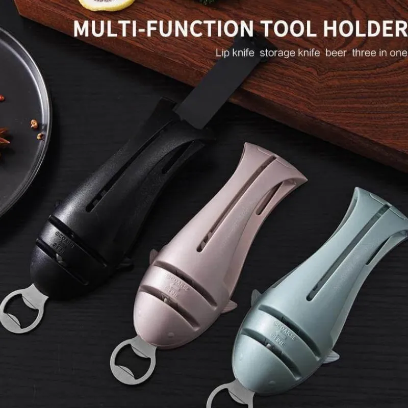 Der 3-in-1-Multifunktionsmesserschärfer ist ein unverzichtbares Werkzeug für alle, die ihre Küchenklingen mühelos pflegen möchten. Dieses innovative Produkt vereint Messerschärfer, Messerhalter und Korkenzieher in einem kompakten Design und ist somit eine praktische Ergänzung für Ihr Zuhause.