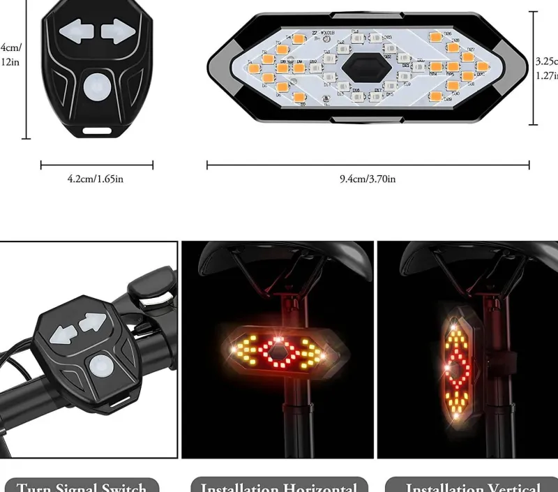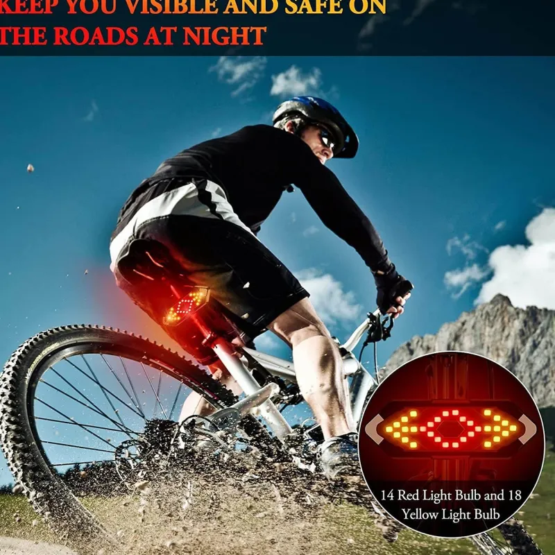 Steigern Sie Ihre Sicherheit beim Radfahren mit unserem kabellosen LED-Fahrradblinker und Sicherheitskontrollleuchte. Das sorgfältig entwickelte Rücklicht sorgt für optimale Sichtbarkeit und benutzerfreundliche Bedienung. Dieses Fahrradrücklicht verfügt über eine Fernbedienung mit drei intuitiven Tasten, mit denen Sie die Blinker in fünf verschiedenen Modi aktivieren können: Rechtsabbiegen mit lautem akustischem Alarm, Linksabbiegen mit lautem akustischem Alarm, Dauerlicht, Blinklicht und Blinken aller Lichter. Passen Sie diese Modi an Ihre Bedürfnisse und Fahrbedingungen an und machen Sie vorbeifahrende Fahrzeuge effektiv auf sich aufmerksam.