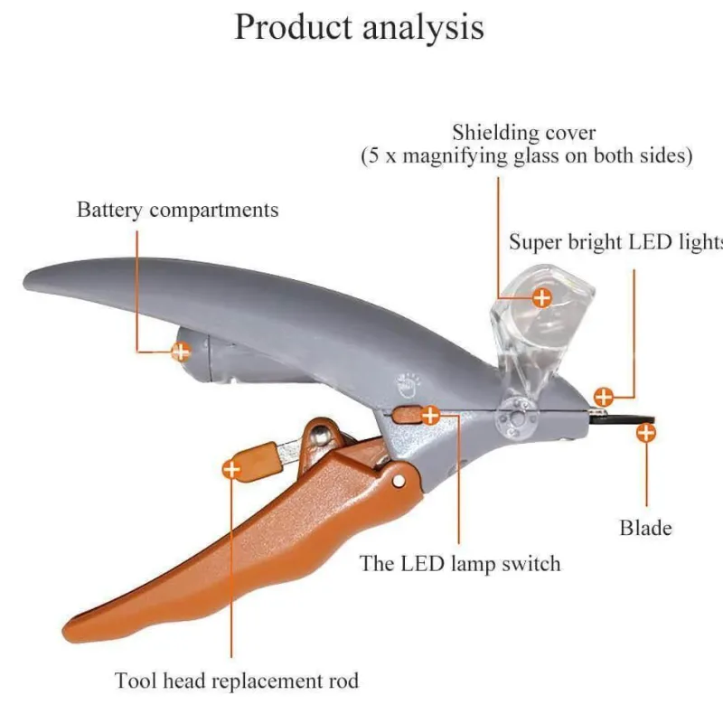 Der LED-Krallenschneider für Haustiere vereinfacht die präzise und einfache Pflege der Krallen Ihres Hundes oder Ihrer Katze. Dieses Pflegewerkzeug verfügt über ein helles LED-Licht, das die Krallen Ihres Haustieres effektiv beleuchtet und so ein sicheres und effizientes Trimmen ermöglicht. Der ergonomische Griff sorgt für Komfort und erleichtert die Handhabung beim Krallenschneiden.