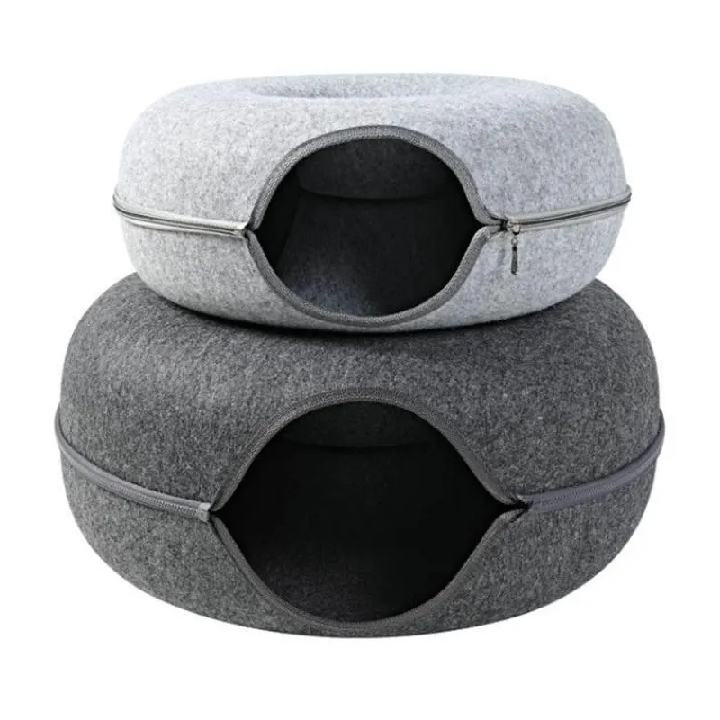 – 1x Donut-Haustierhöhlenbett aus natürlichem Filz.