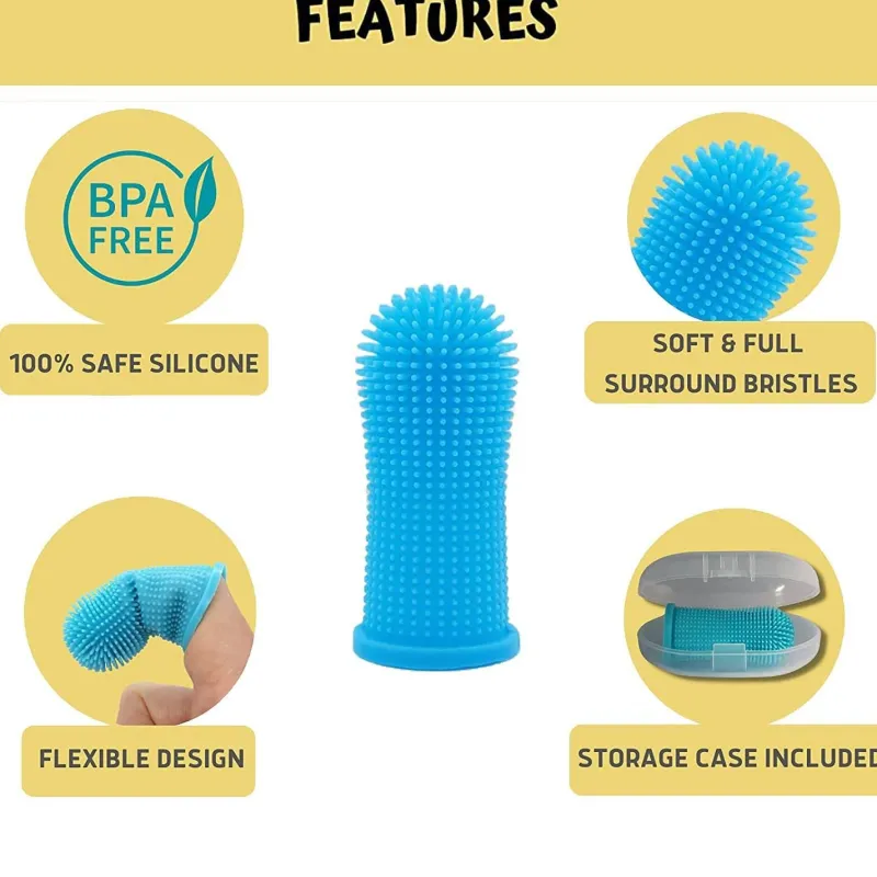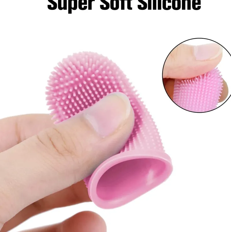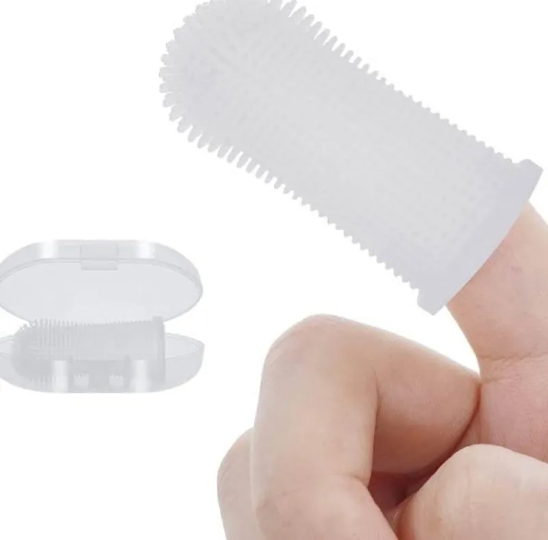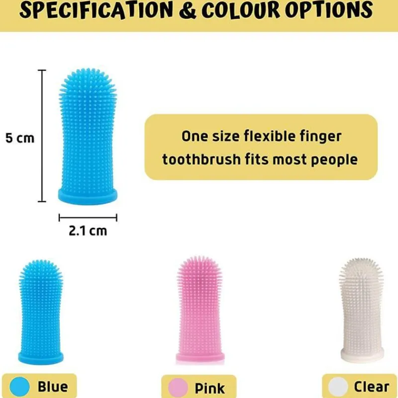 Die Zahnbürste verfügt über ein flexibles Design, das bequem auf die meisten Finger passt und die Verwendung im Vergleich zu herkömmlichen Fingerzahnbürsten, die umständlich sein können, einfacher macht.