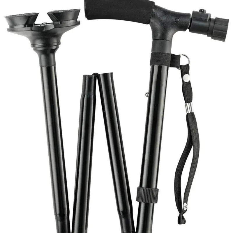 Zu den Spezifikationen gehört ein T-Griff für sicheren Halt, und das outdoor-freundliche Design eignet sich für verschiedene Aktivitäten, einschließlich Bergsteigen. Die teleskopische und faltbare Konstruktion ermöglicht einfache Lagerung und Transport und macht das Gerät zu einem praktischen Begleiter für unterwegs. Zusätzlich verfügt es über eine Notlichtfunktion für zusätzlichen Komfort.