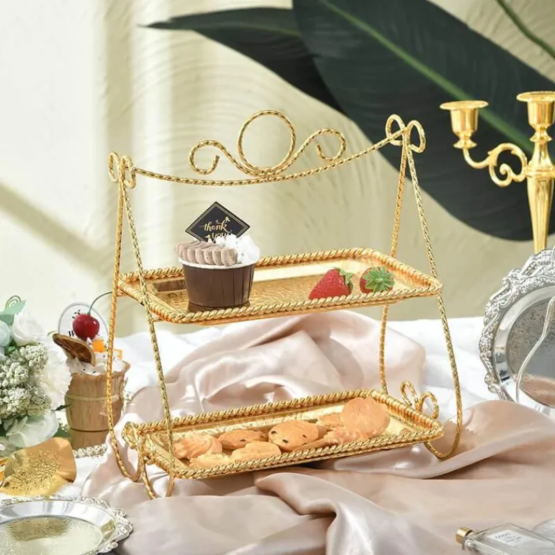 Verschönern Sie Ihre Dessertpräsentation mit unserem durchdachten doppelstöckigen Tortenständer. Er eignet sich ideal für die Präsentation köstlicher Leckereien wie Cupcakes, Gebäck und andere Süßwaren. Der Ständer besticht durch sein unverwechselbares, schwingendes Design, das Ihrer Präsentation eine verspielte Note verleiht und ihn sowohl für private Feiern als auch für gewerbliche Anlässe hervorragend geeignet macht. Ob Geburtstagsfeier, Hochzeitsplanung oder Desserttisch in einer Bäckerei – dieser Tortenständer verleiht jedem Anlass Charme und Kreativität.