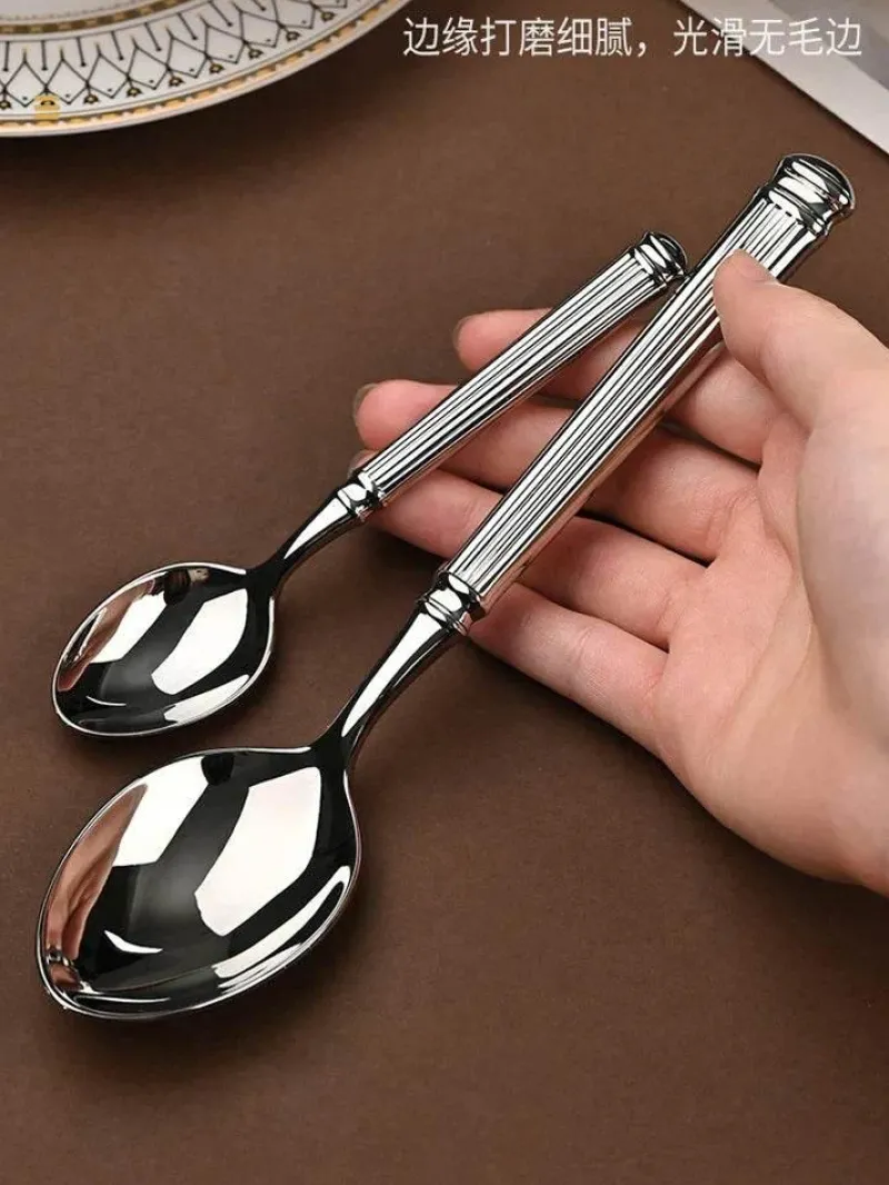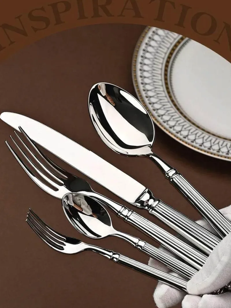 Diese edle Besteckkollektion besticht durch ihr markantes römisches Säulendesign und verleiht jedem Tisch ein künstlerisches Element. Die hochglanzpolierte Oberfläche fängt das Licht ein und reflektiert es, sodass sie sich für viele Anlässe eignet – ob Familienessen, festliche Zusammenkünfte, Hochzeiten oder besondere Anlässe.