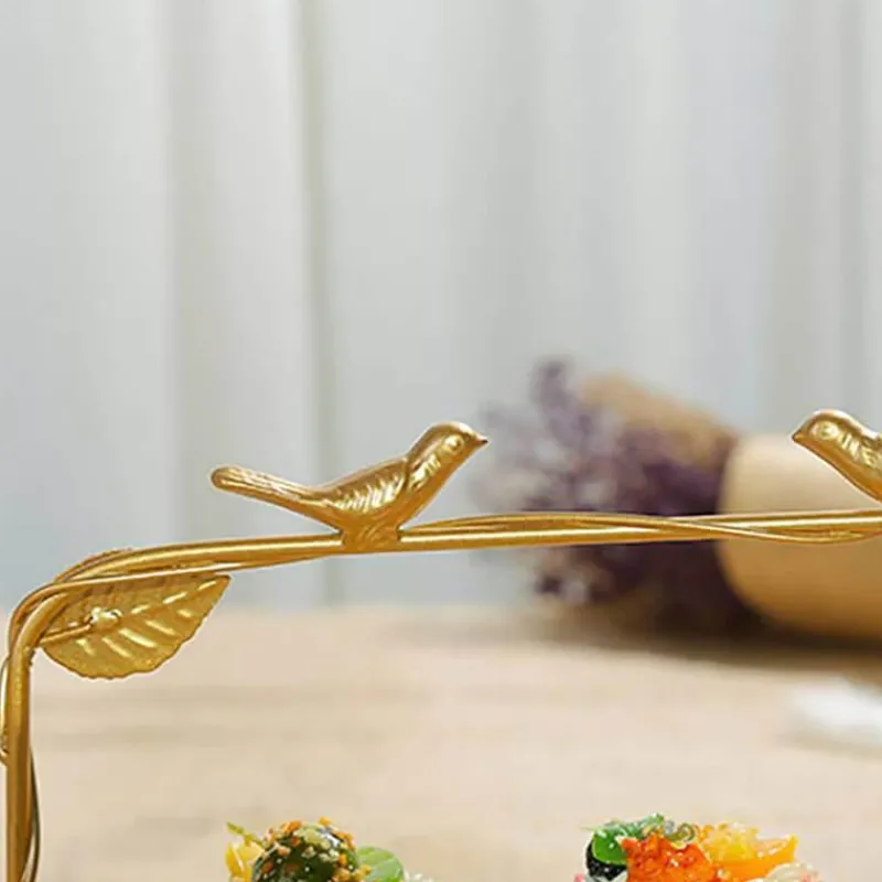 Präsentieren Sie einen wunderschön gefertigten Dessertständer mit harmonischem Goldvogel- und Blattdesign, der jeder Hochzeit oder jedem besonderen Anlass Eleganz verleiht. Mit seiner naturinspirierten Ästhetik und dem eleganten Goldfinish wertet dieser dekorative Tortenständer nicht nur Ihre Tischdekoration auf, sondern dient auch als markantes Herzstück, das alle Blicke auf sich zieht.