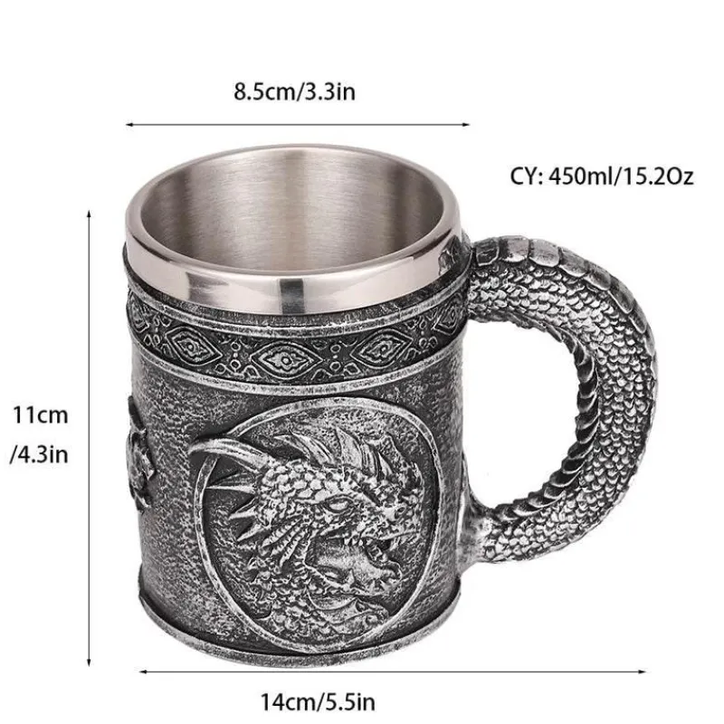 Wir präsentieren den silbernen Bierkrug „Böser Drache“ – eine außergewöhnliche Wahl für Fantasy-Fans und Bierliebhaber. Dieser Retro-Krug aus robustem Edelstahl und Harz fasst großzügige 450 ml und eignet sich perfekt für den Genuss Ihrer Lieblingsgetränke.